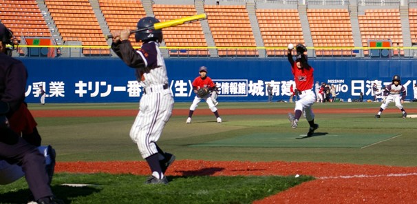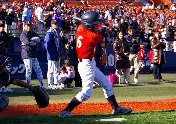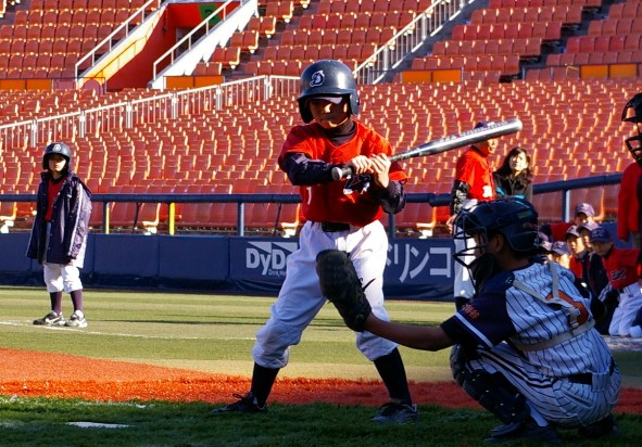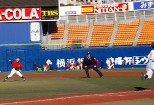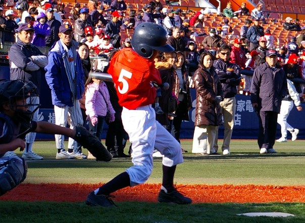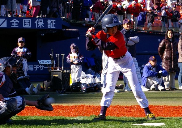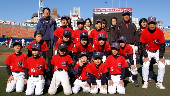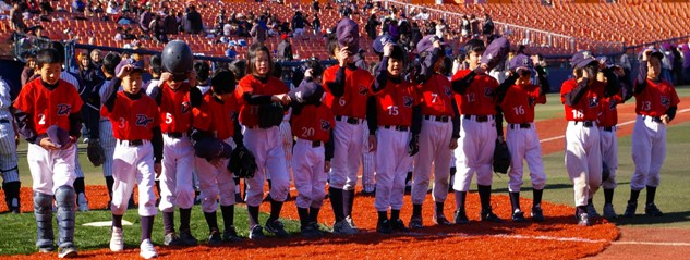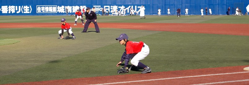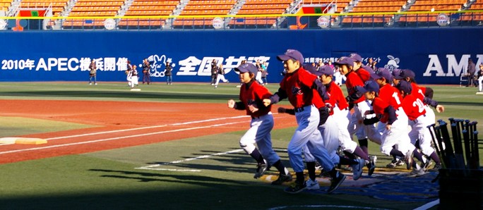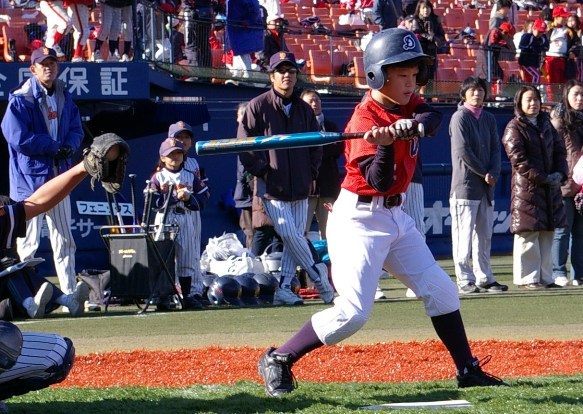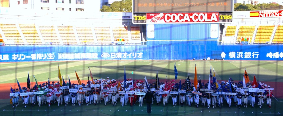 市内から32チームが参加して新人大会が行われた。数日前からの寒波の中横浜スタジアムにて開会式を行う。